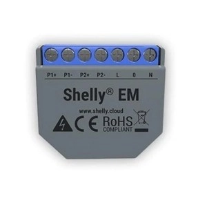 Shelly EM is a Wi-Fi-operated energy meter with contactor control. It allows you to simultaneously monitor the consumption of any home appliances, electric circuits, and office equipment (lights, power lines, security systems, heating, cooling, etc.) in 2 circuits on the same phase or individually. Shelly EM is perfect for measuring solar energy production, monitoring household consumption, and controlling heavier-load appliances
